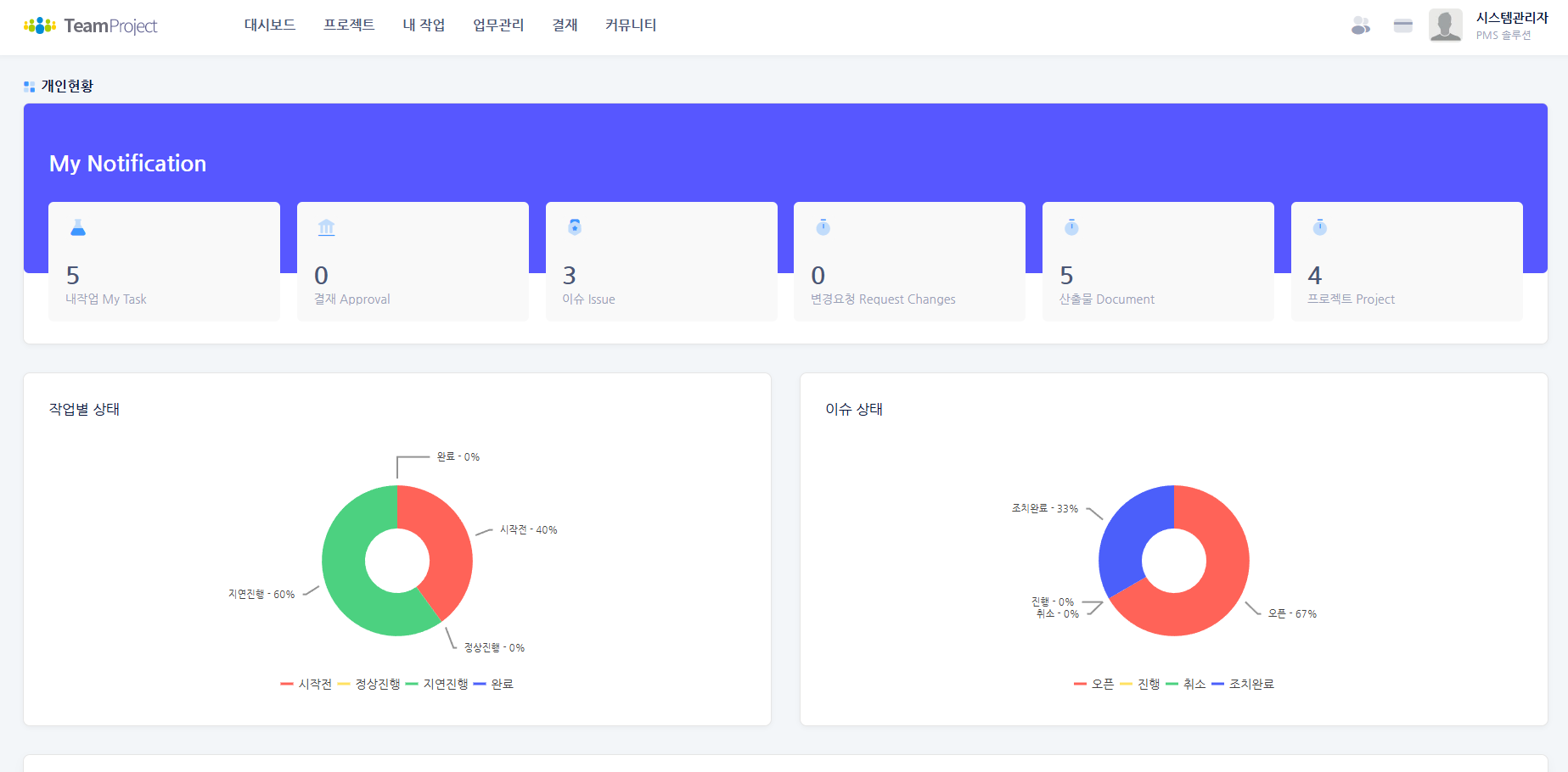 프로젝트 매니저가 배정한 작업의 완료율 및 산출물 관리를 할 수 있습니다.